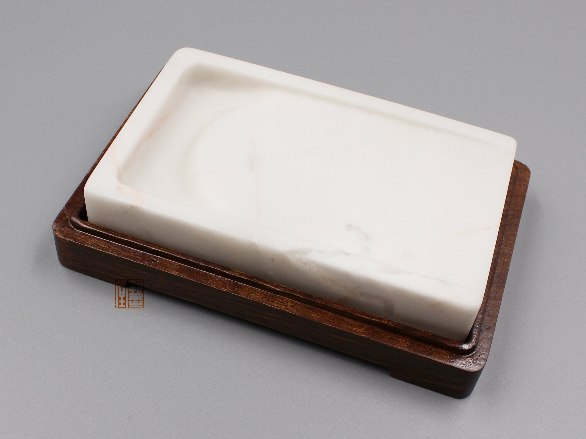 White Duan Rectangular Tangchi Inkstone Duan Inkstone Practical Study Inkstone Table Cinnabar Color Ink Collection Chestnut Wood Box Calligraphy and Painting Inkstone Table