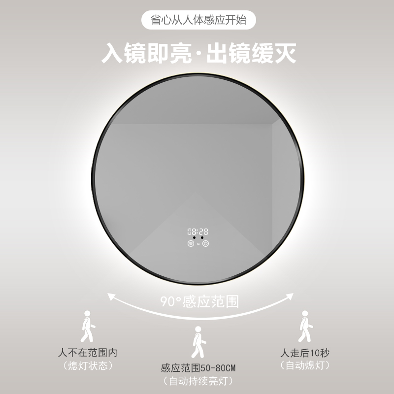 Single round mirror without light without touch switch (take note color) white light no touch anti-fog explosion-proof (take the default black frame other color remarks) warm light no touch anti-fog