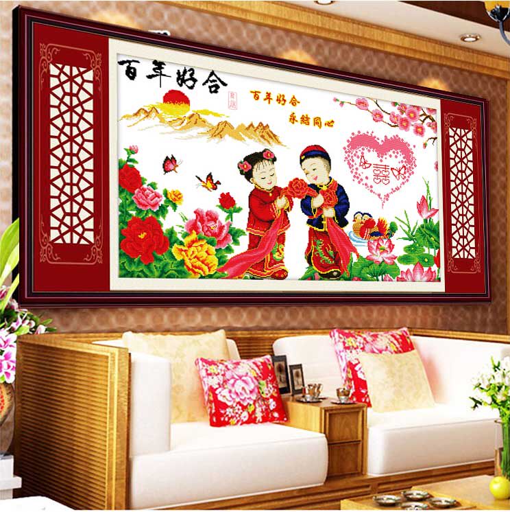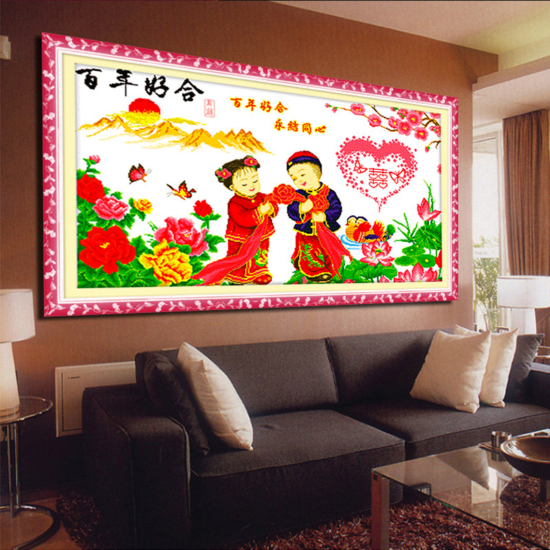 Purely hand-pasted diamond painting finished century-old alloy boy jade girl full diamond cross stitch wedding new wedding