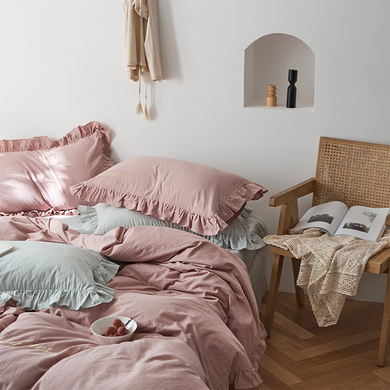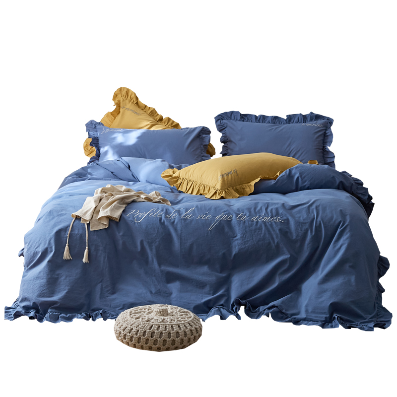 ins net red girl lace embroidery washed cotton four-piece set student dormitory pure cotton cotton bed sheet quilt cover