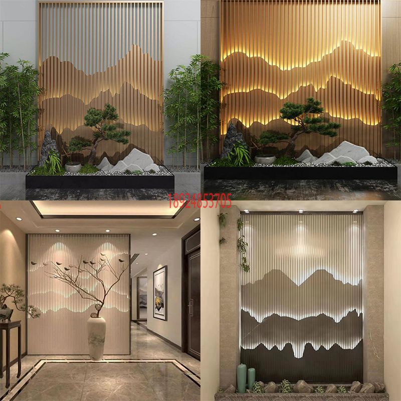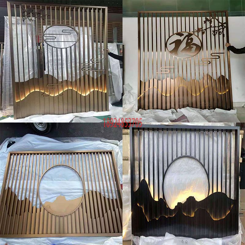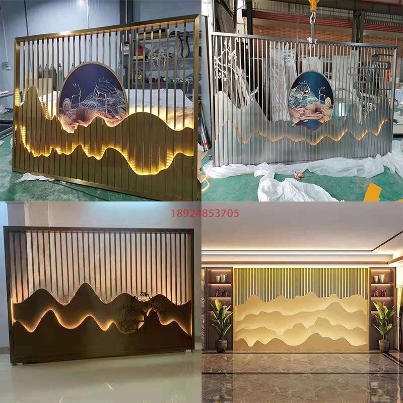 Stainless steel metal rockery art screen partition brushed laser aluminum carved high-end hotel villa background wall decoration