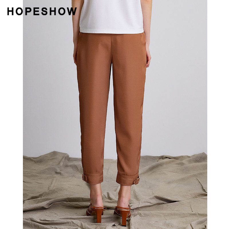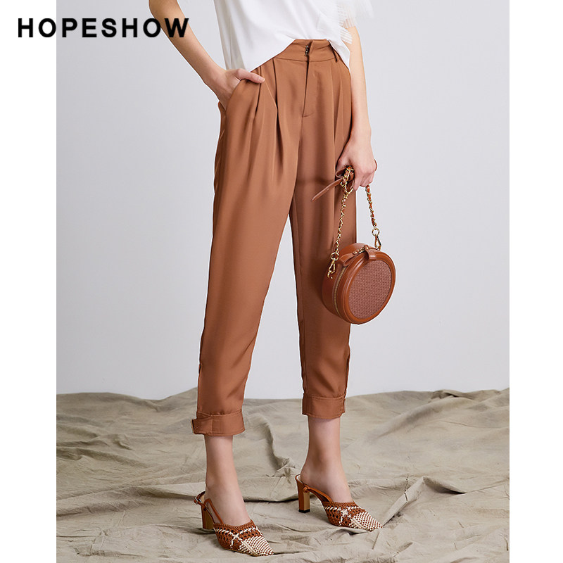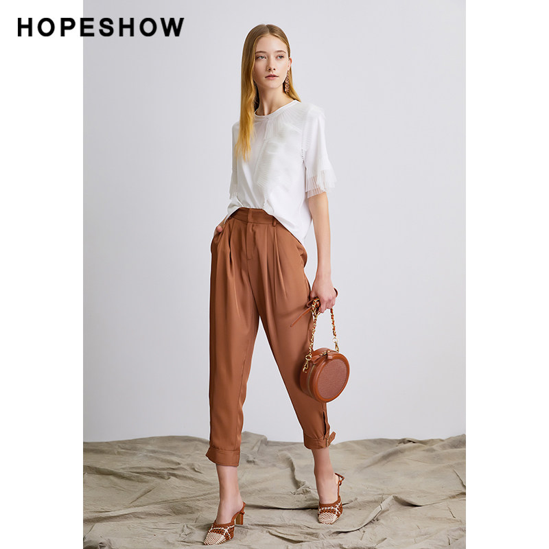 Red-sleeved hopeshow cropped pants summer new women's all-match thin solid color natural waist loose harem casual pants