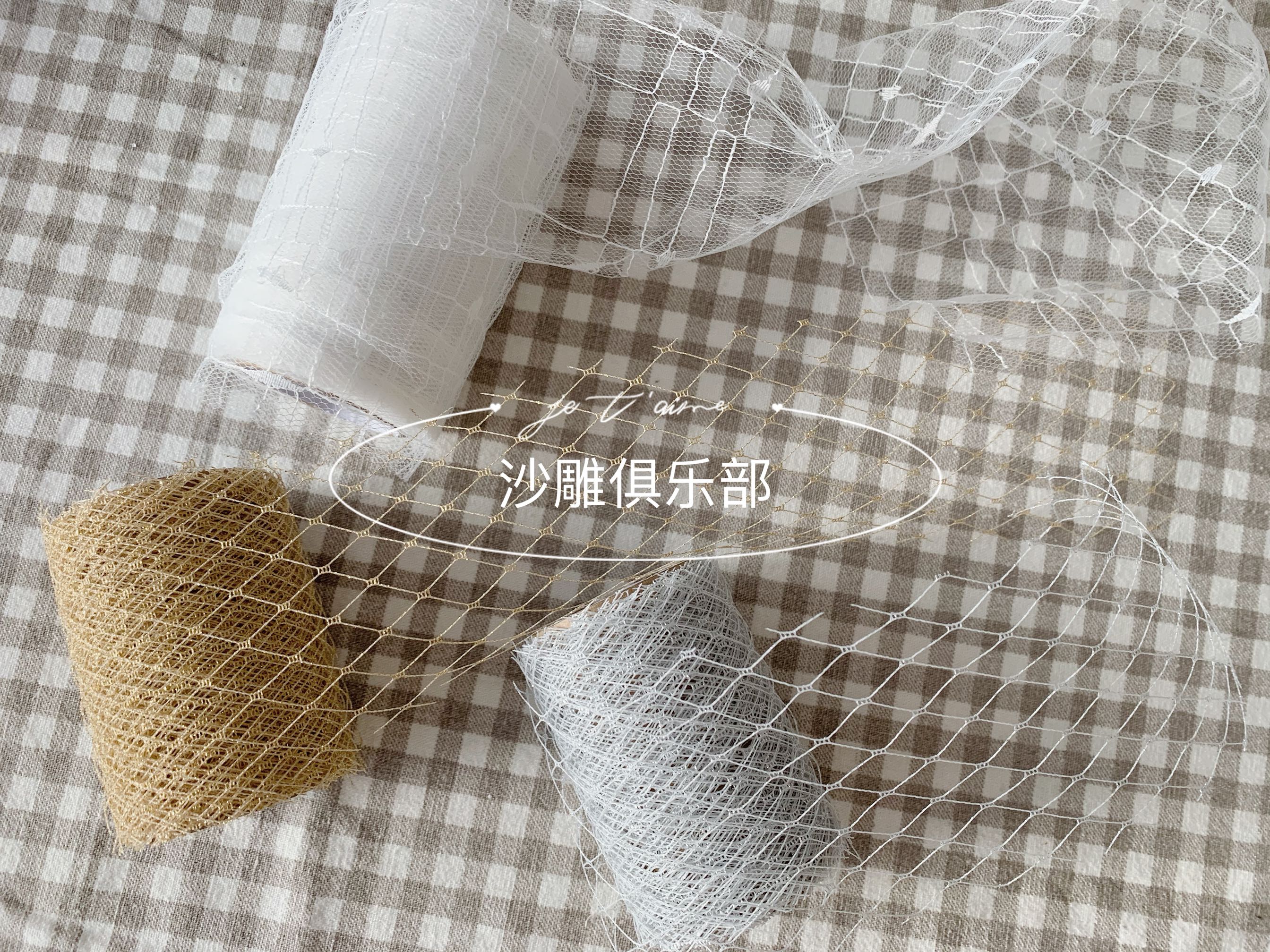 White lace half meter Gold mesh half meter Silver mesh half meter Yarn powder 1 meter