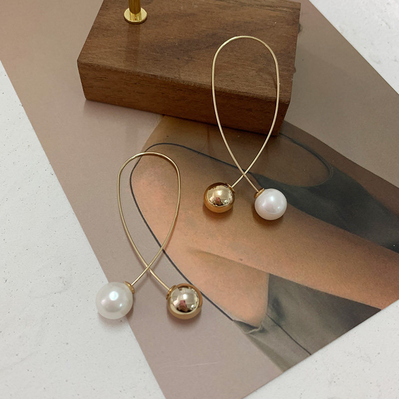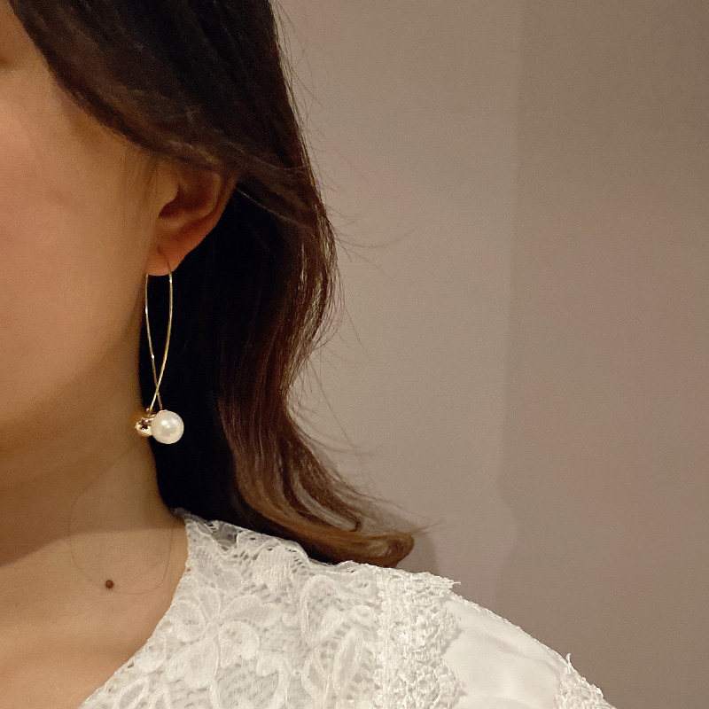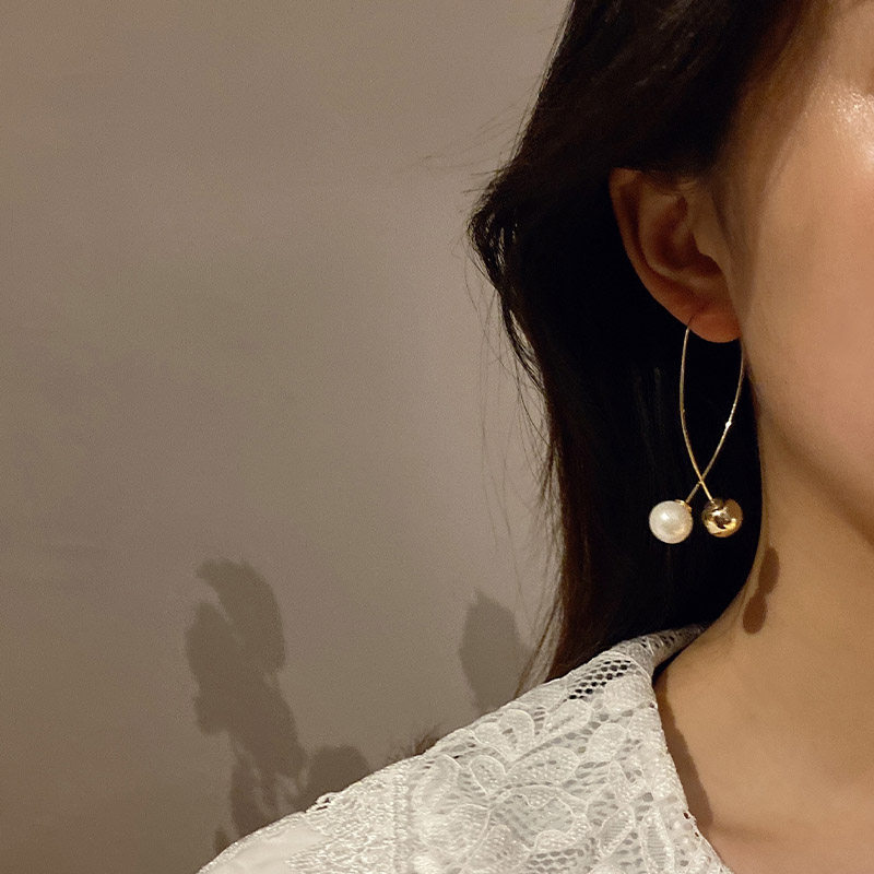Pearl earrings 2021 new trend tassel earrings Super fairy Net red Korean simple temperament ear wire round face earrings