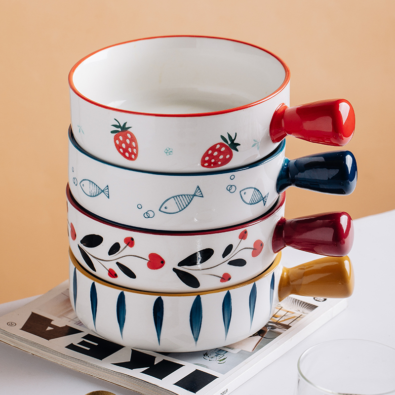 Day Style Creative Hand-painted Ceramic Handle Bowls Baking Bowls Fruit Salad Bowls Baking Rice Bowls breakfast bowls Bowl Rice Bowls Rice Bowls