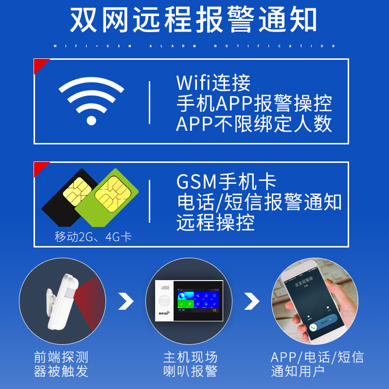 Wifi anti-theft alarm household storehousewireless remote intelligent graffiti GSM infrared alarm