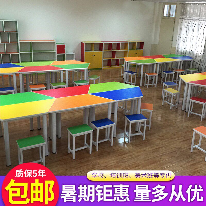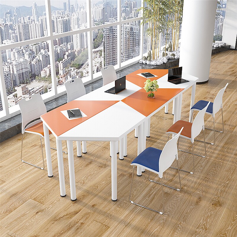 Hexagonal office combination training meeting trapezoidal table mobile hexagonal stitching table student single classroom table and chairs