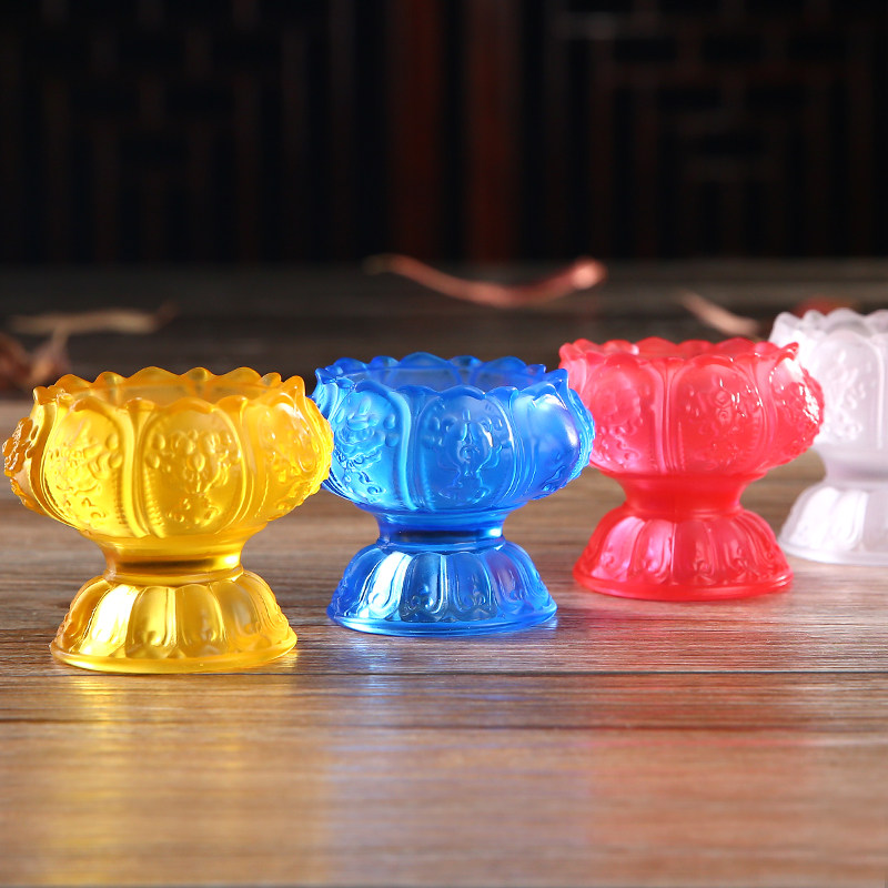 Seven colorful eight auspicious glazed lotus lamp holder Buddha Former home for Buddha candle liquid ghee candle holder with long Ming lamp swing piece