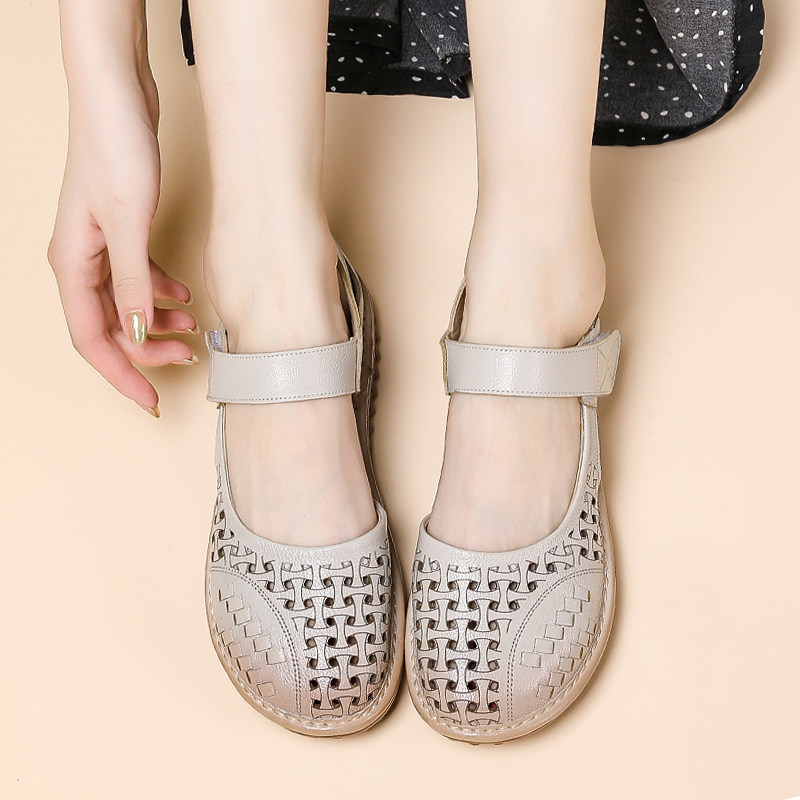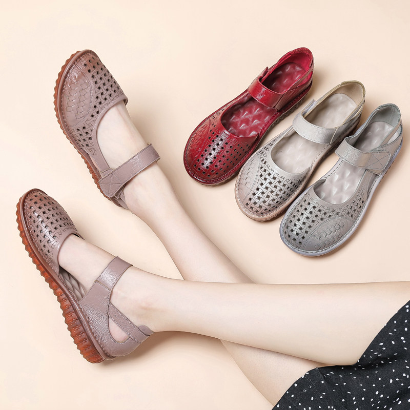 21 summer new leather female shoes hollow and breathable anti - skid bull soles and leap moon red mom sandals