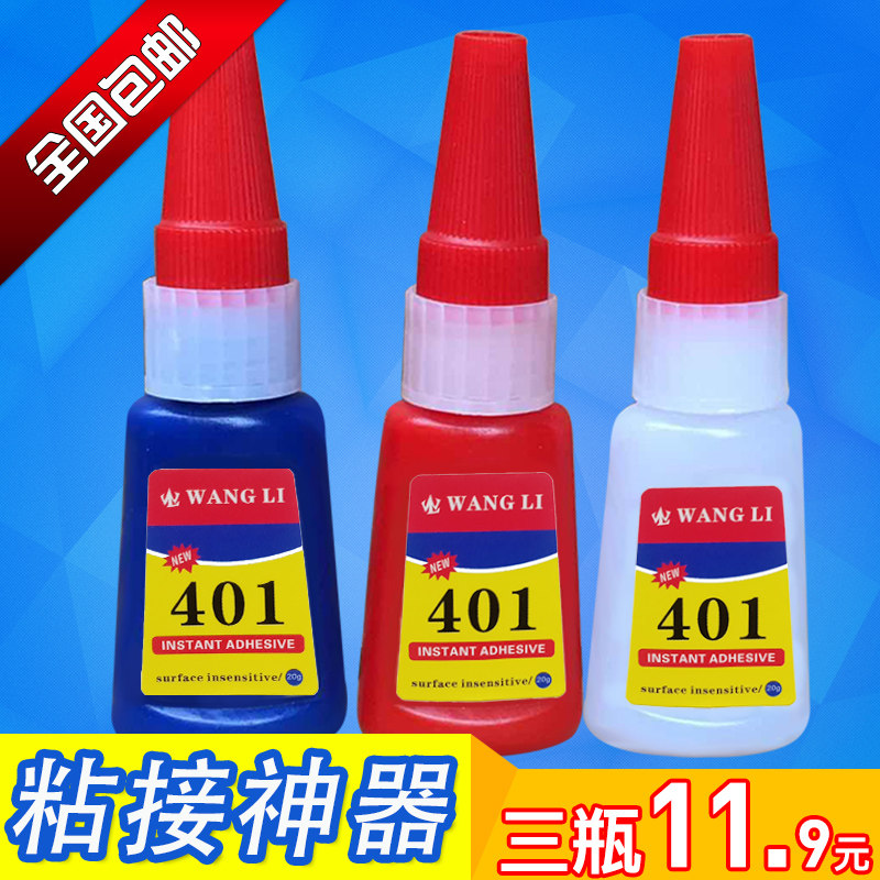 20 grams of 401 glue, one bottle of 20 grams of 401 glue, 3 bottles of one kilogram of 401 glue, 500 grams of 401 glue