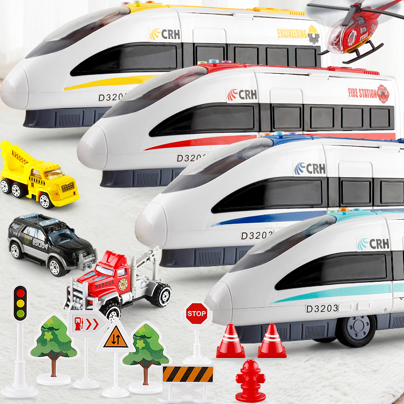 Red high-speed railway fire series with 6 alloy dolly road signs 11 pieces of blue high-speed rail police series with 6 alloy dolly road signs 11 pieces of yellow high-speed rail engineering series with 6 alloy trolley road