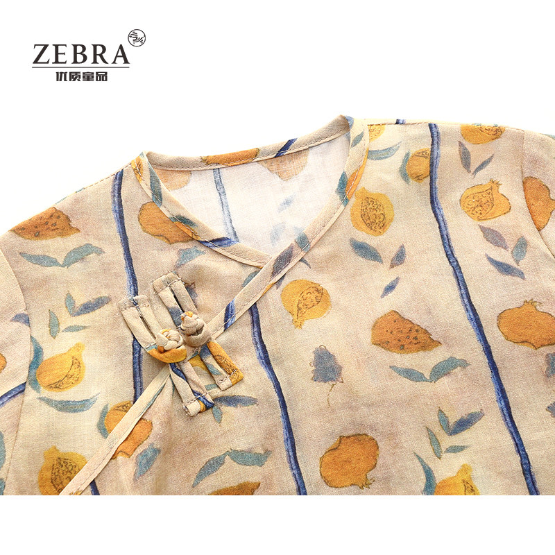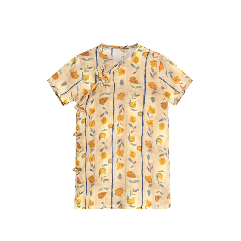 Summer day Hemp Light Sweatshirt Thin Blouse Blouse Girl Improved Ocean Dress Qipao Skirt China Wind Retro Short Sleeve Shirt