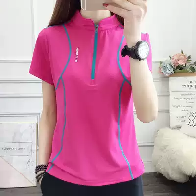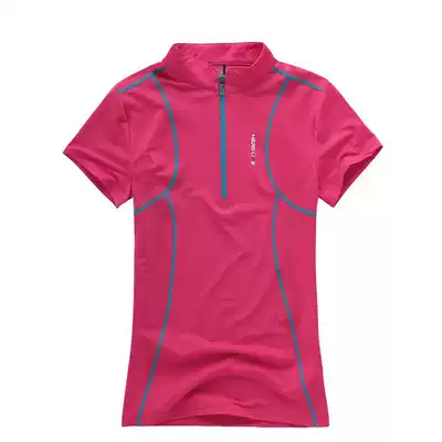 Quick-drying clothes female outdoor elastic short sleeve women's T-shirt spring and summer elastic breathable sweat absorption stand collar running mountaineering half sleeve