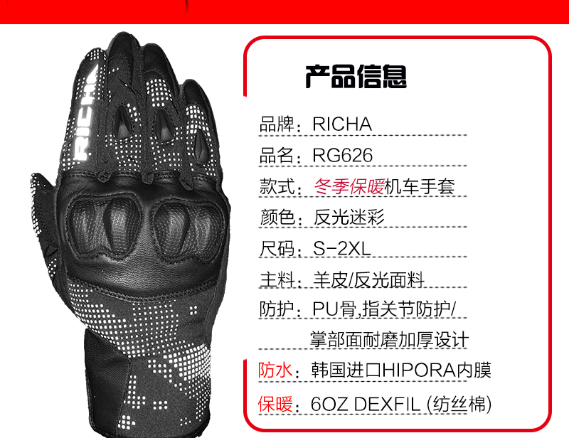 Motorcycle gloves winter waterproof warm men carbon fiber RICHA thickened knight fall motorcycle riding gloves