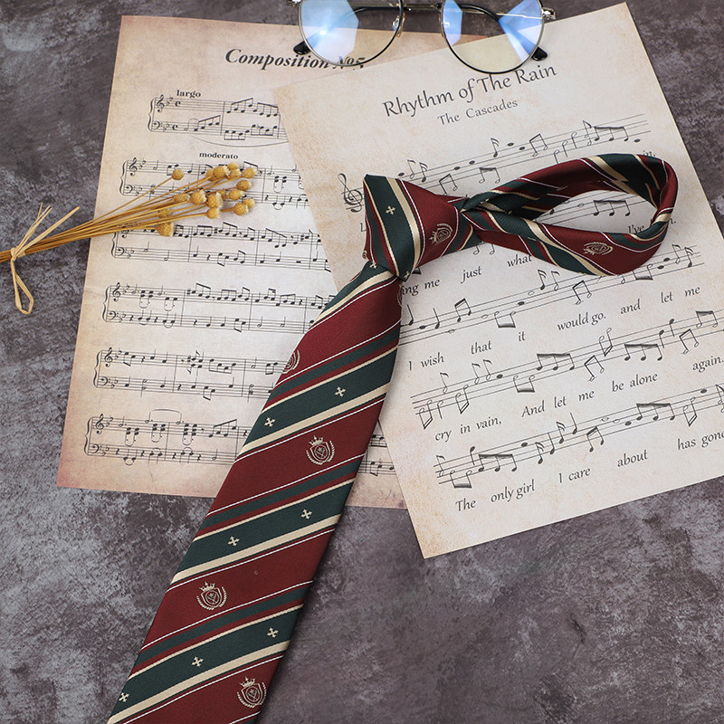 (Plowing) Moozaki College Original Red Green Gold School For Sensation Stripe Student College Wind Uniform JK DK Tie