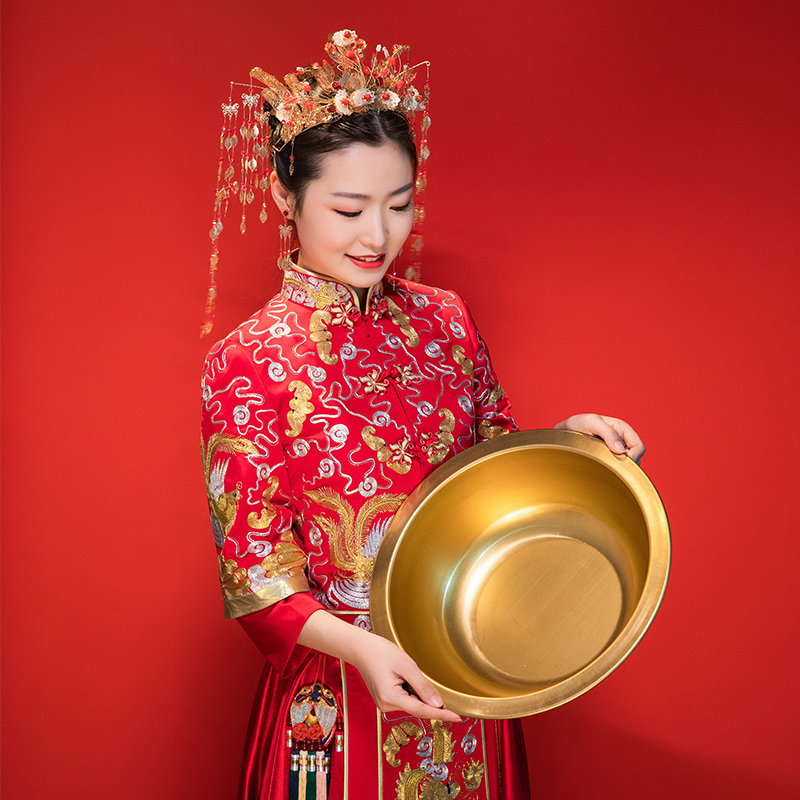 Gold copper basin (diameter 34) non-oxidizing dragon phoenix model New has arrived