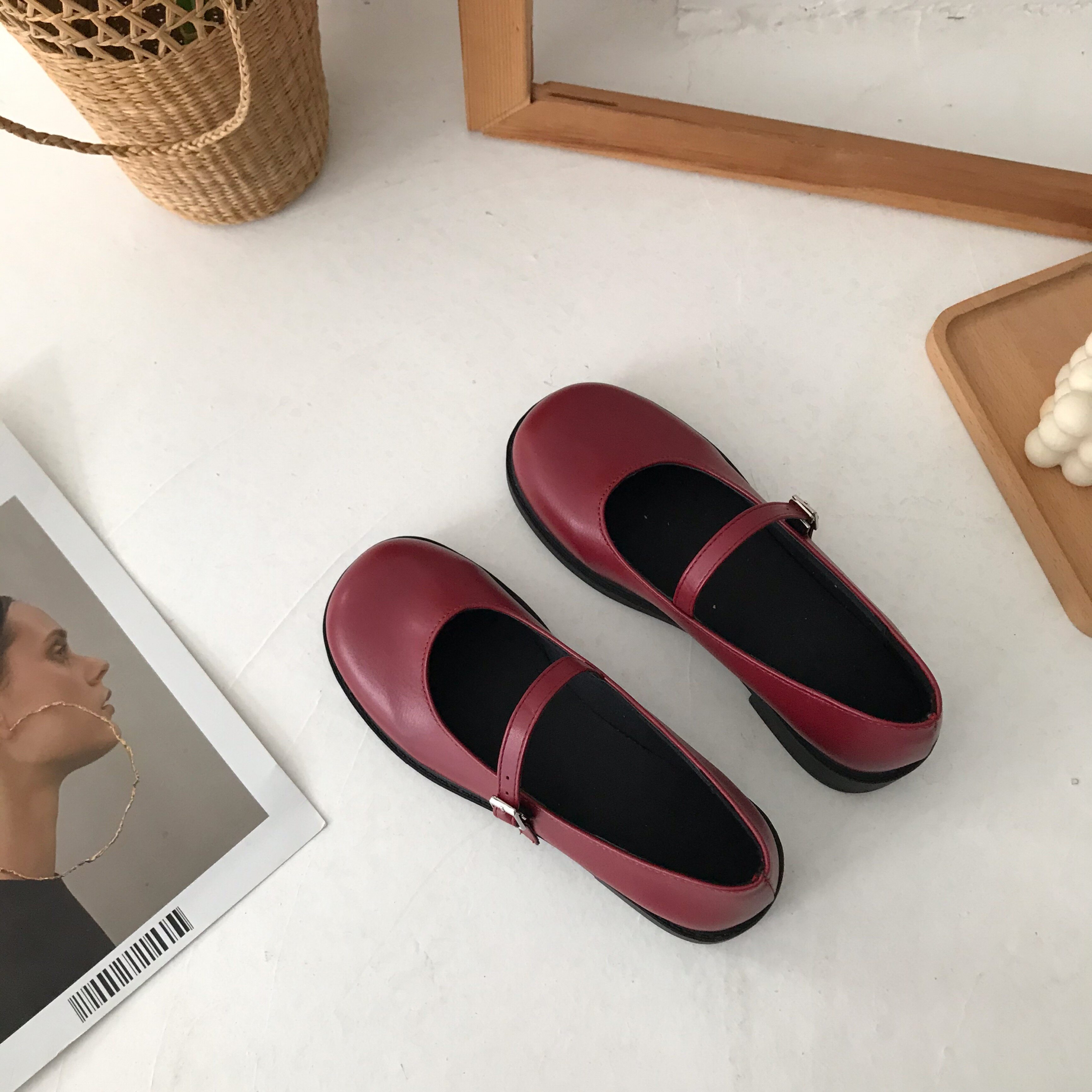 Small Sun Home Retro 100 Hitch College Wind Jk Mary Jins Flat Bottom Leather Shoes Women 2022 Summer Thin single shoes