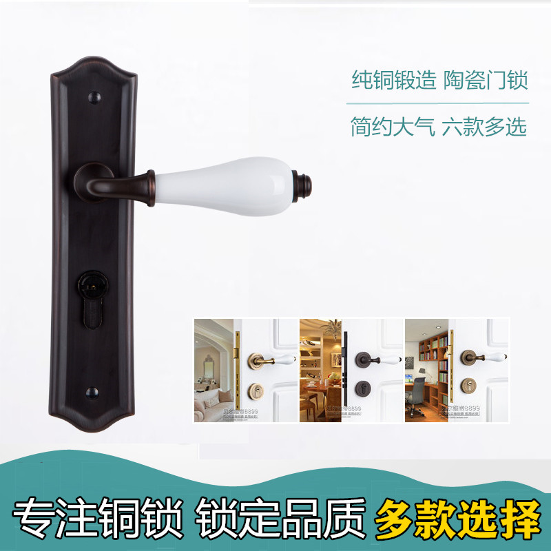 Silent Door Lock Pure Copper Black Half Price Double Mountain Solid Wood Door Magnetic Attraction Lock Universal Ceramic Bedroom Door Handle Full Copper