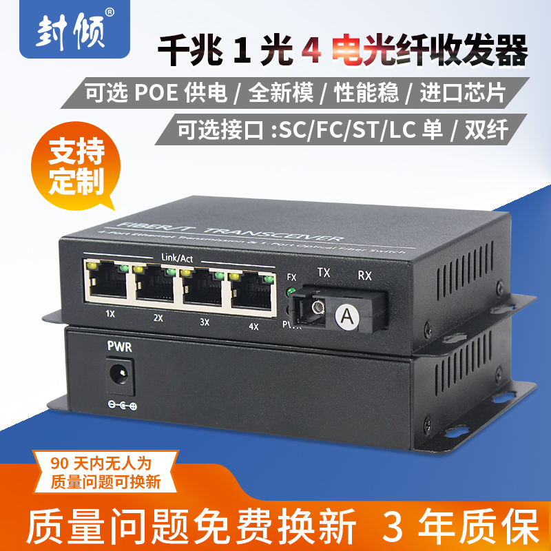 Seal Leaning one thousand trillion 1 Light 4 Electric Fiber Transceiver Support Poe Powered 1000M 4 Internet Interface PV Converter 4 Road Film Monitoring HD Internet Optical Optical Transceiver Fiber Switch Single Fiber Sccfc