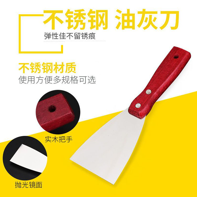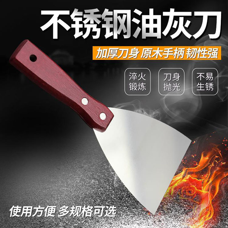 Thickened Solid Wood Handle Oil Ash Knife Stainless Steel Shovel Knife Lot Soil Knife Batch Grey Knife Rag Cleaning Scraper Paint Rag Knife