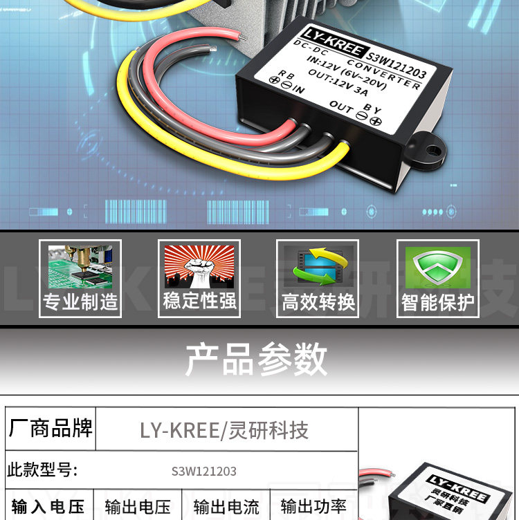 LY-KREE1202 6-20V to 12V2A power supply automatic lift and downward monitoring power supply regulator