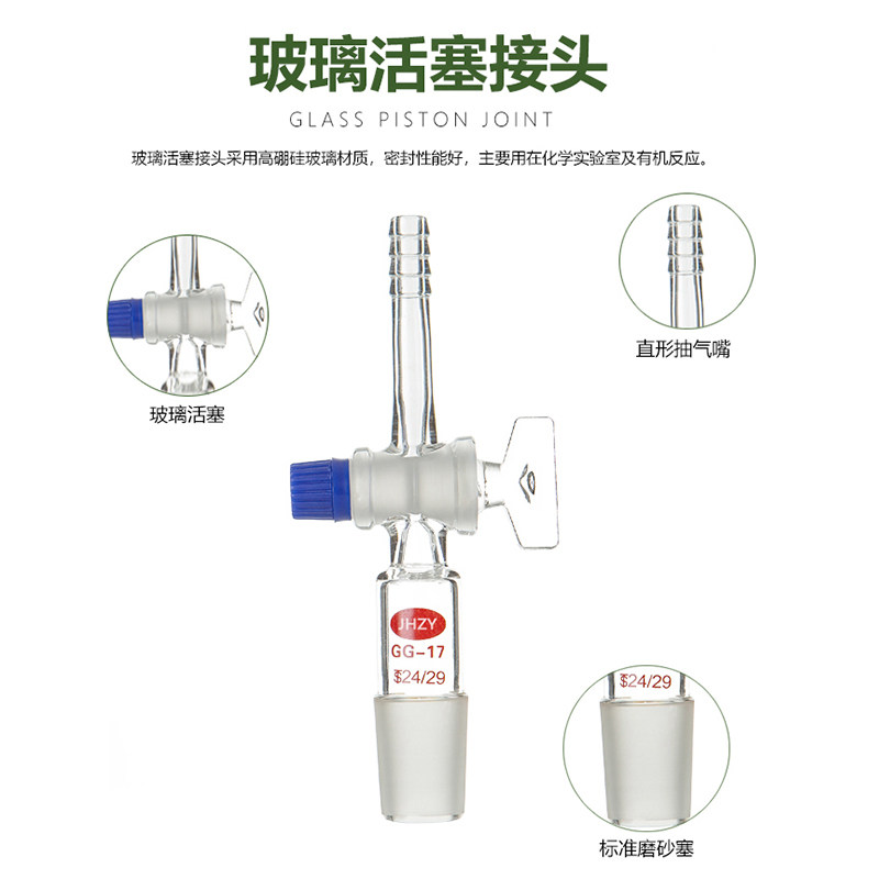 High borosilicate PTFE glass piston suction joint PTFE three-way two-way 14 19 24 29#with T-shaped piston PTFE piston elbow plug trachea suction joint glass