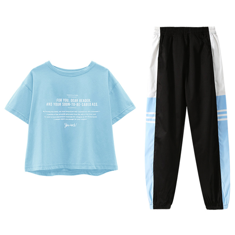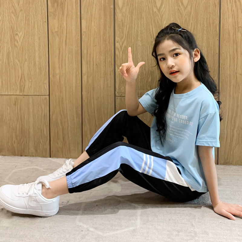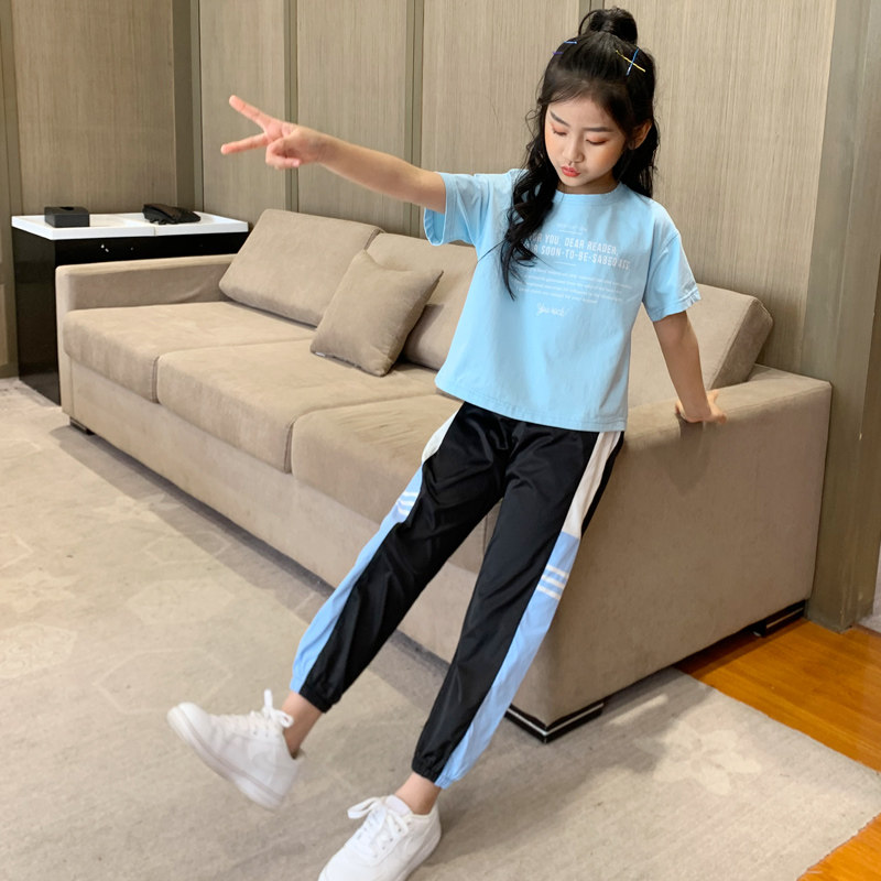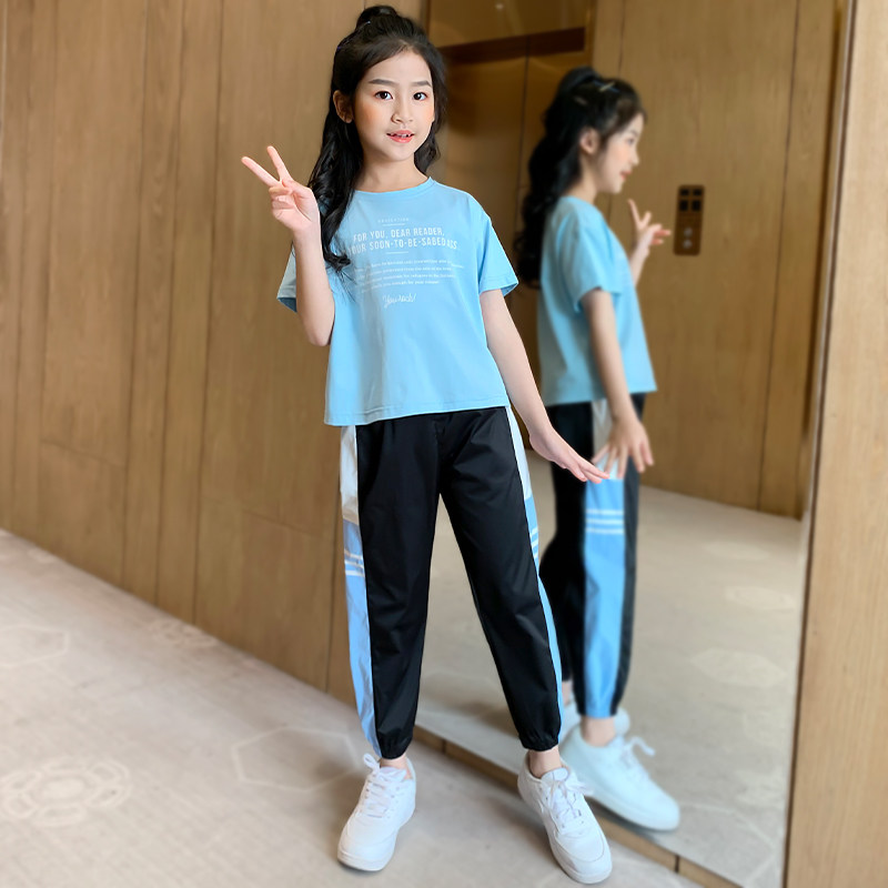 Girl Suit Summer Thin sports short sleeves Two sets 2022 new net Red Ocean sends 12-year-old female great child summer dress