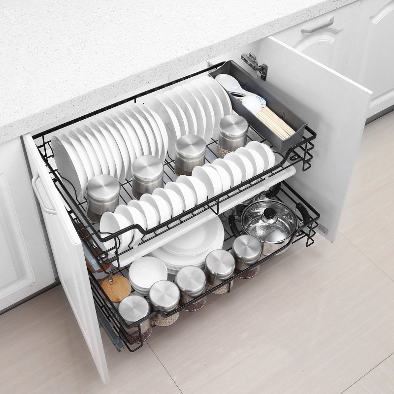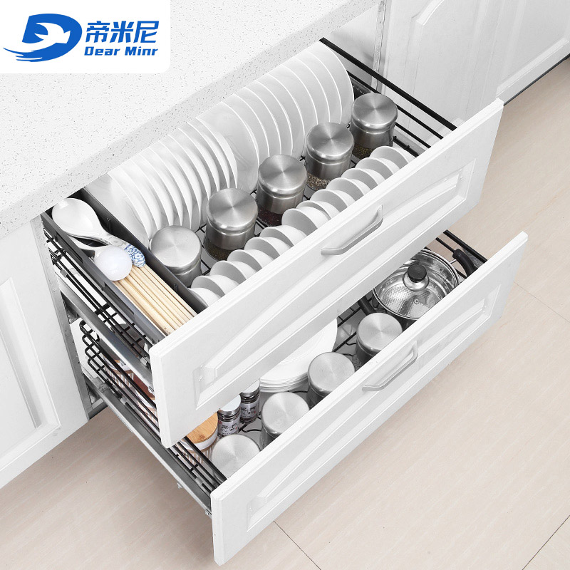 Diminira basket kitchen full cabinet double - deck bowl dish dish 304 stainless steel dish dish