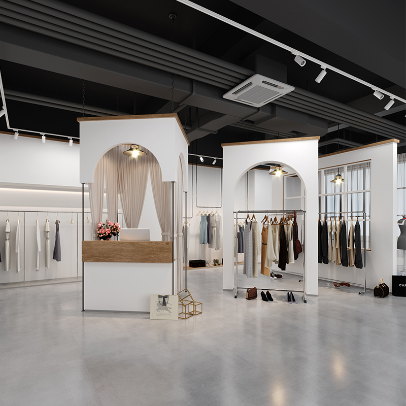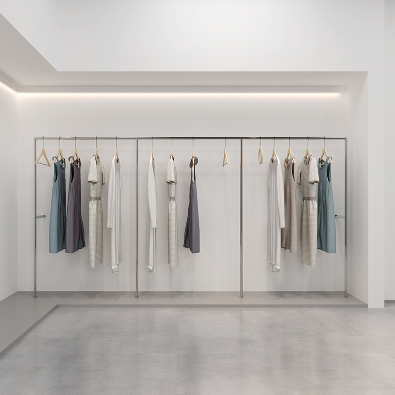 Clothing store display rack on the corner of the wall hanging side rack men and women wall hanger silver stainless steel rack