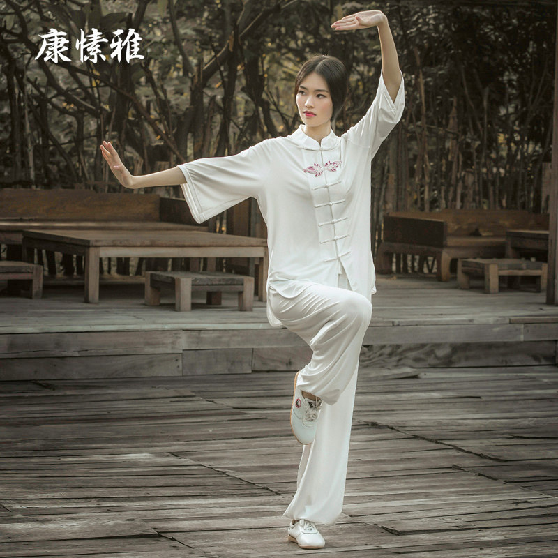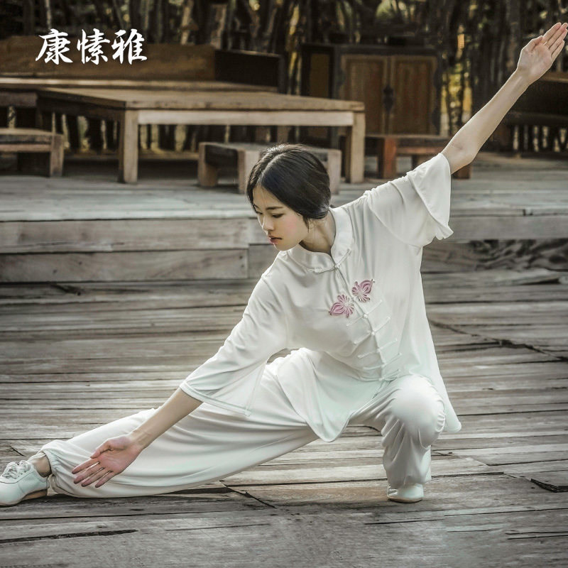 Kang suya tai chi suit female cotton linen martial arts performance suit boxing training summer short sleeve suit summer new style