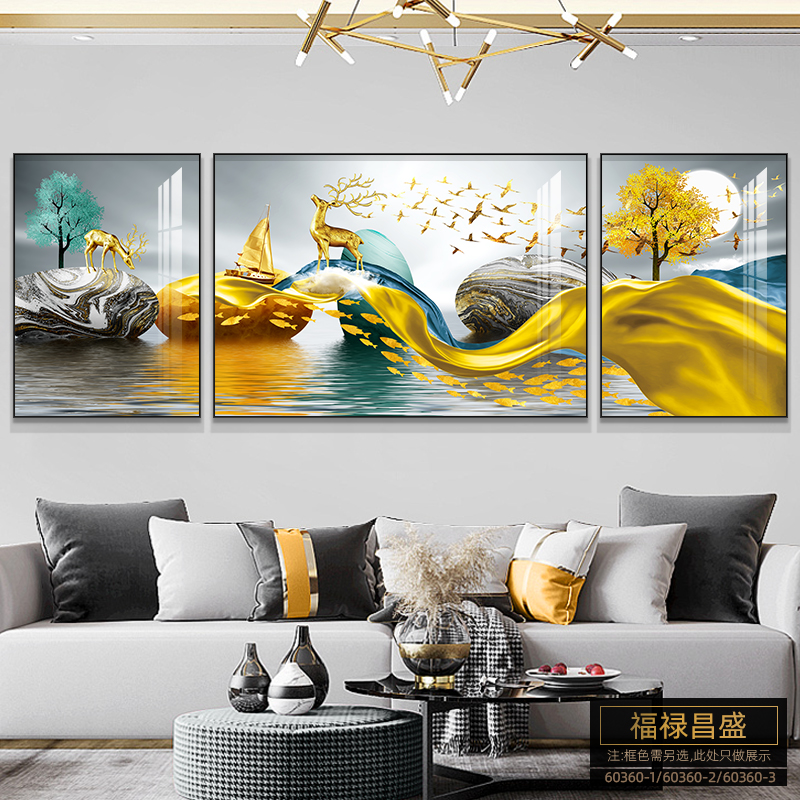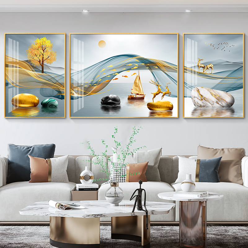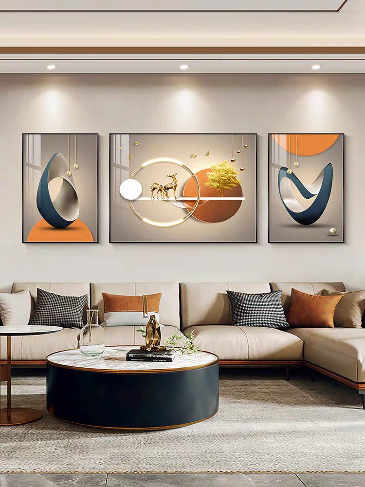Living Room Decoration Painting Light Extravagant Modern Simplicity Hung Painting Sofa Background Wall Mural Atmosphere New Chinese Nordic Triptych-Taobao