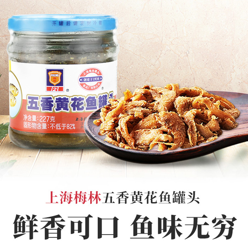 Shanghai Merlin's spicy five-spice yellow flower fish canned 227g * 2 jars of seafood fish next to the food convenience food