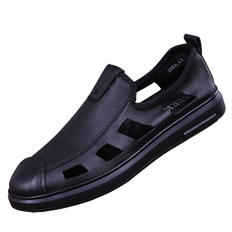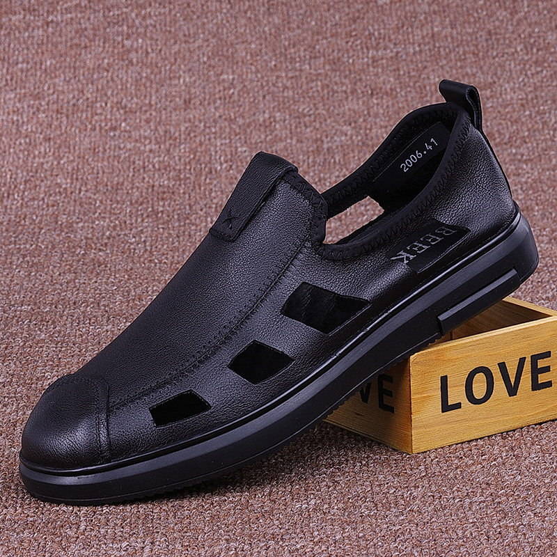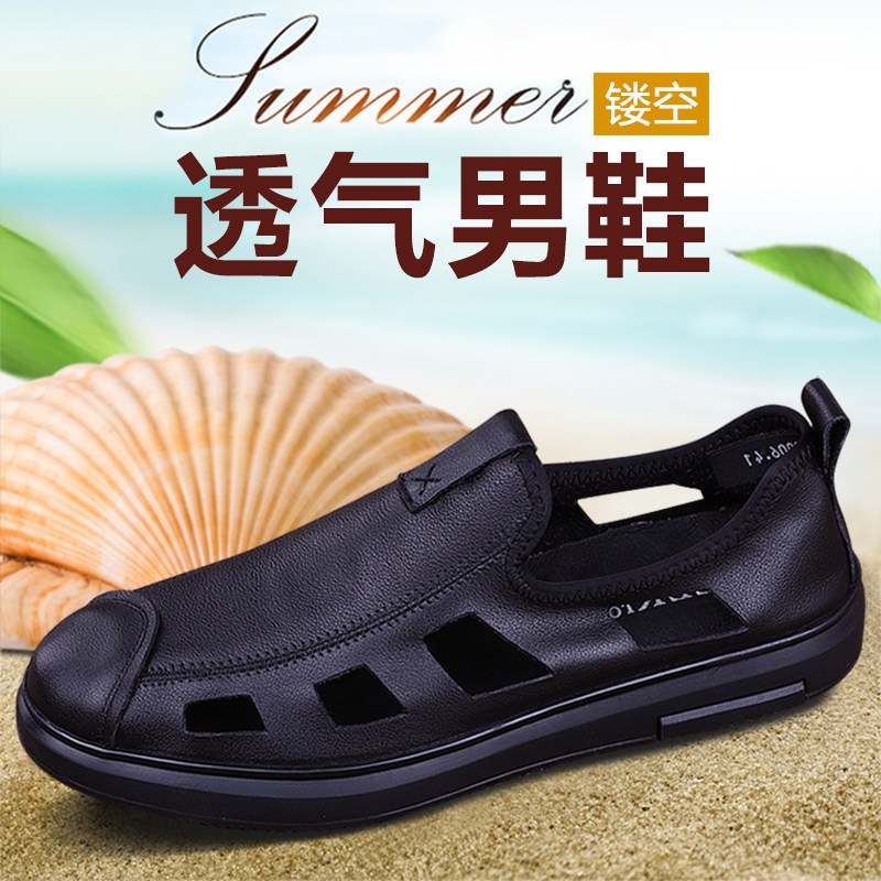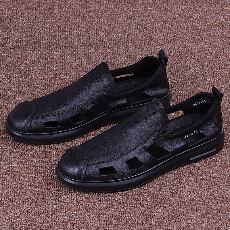 Foreign trade men's leather sandals leather new summer men's shoes hollow breathable casual leather shoes men's soft sole toe sandals