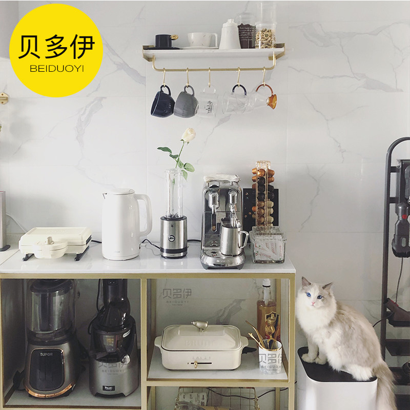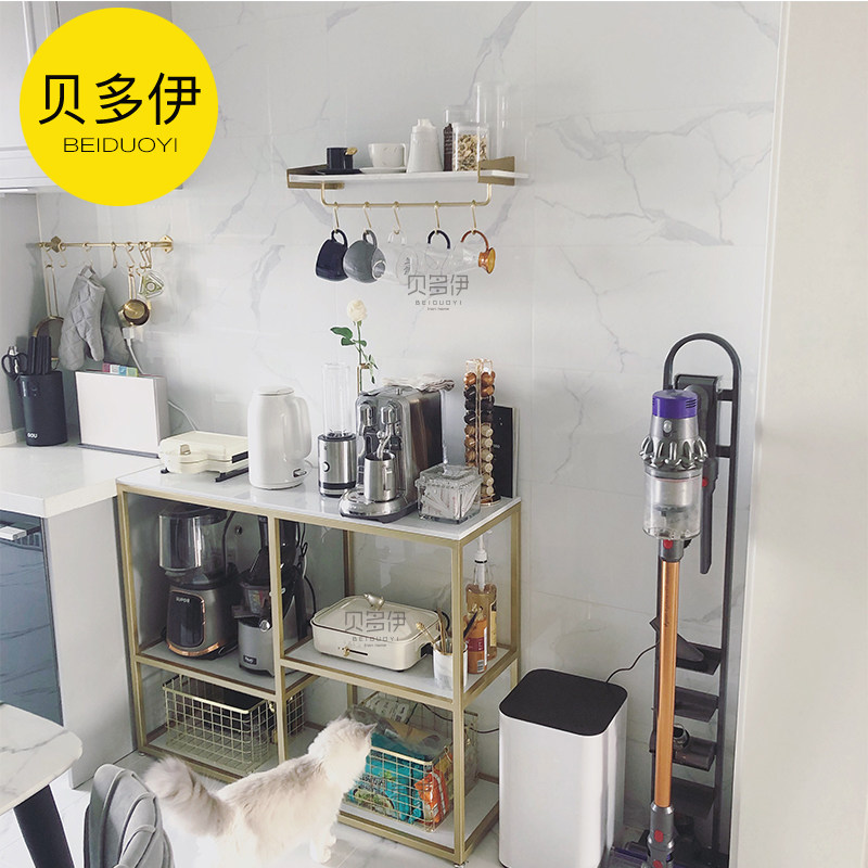 Nordic kitchen marble shelves landed against walls of light luxury kitchen cabinet small household shelf tables