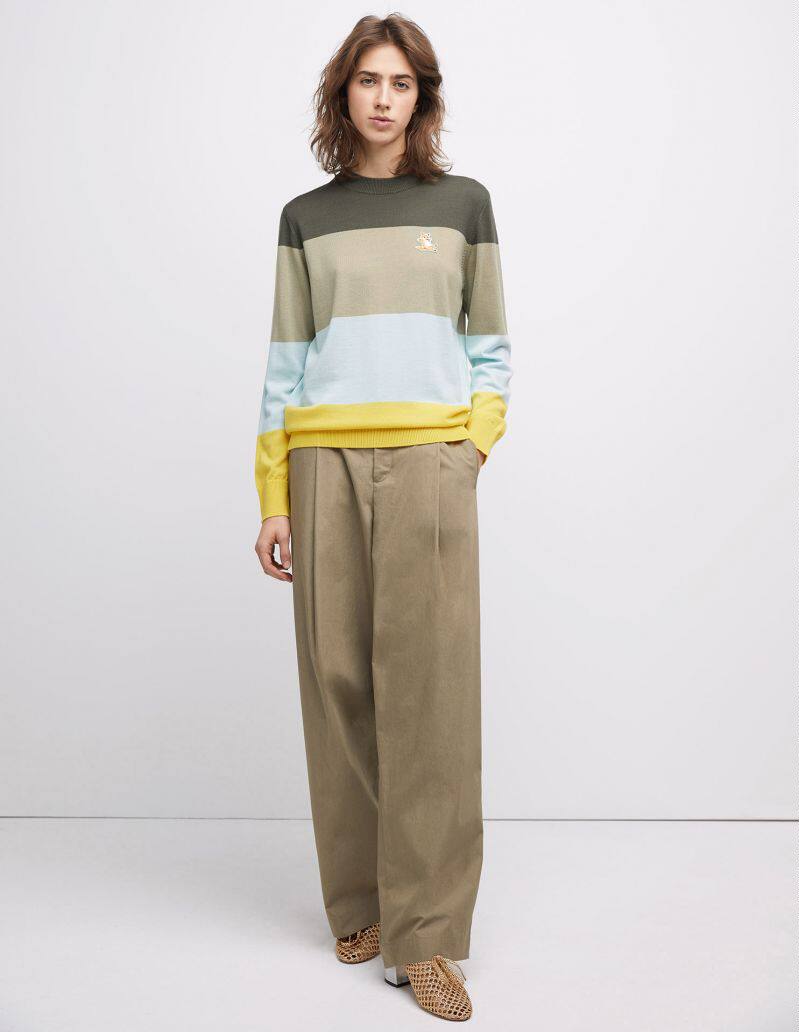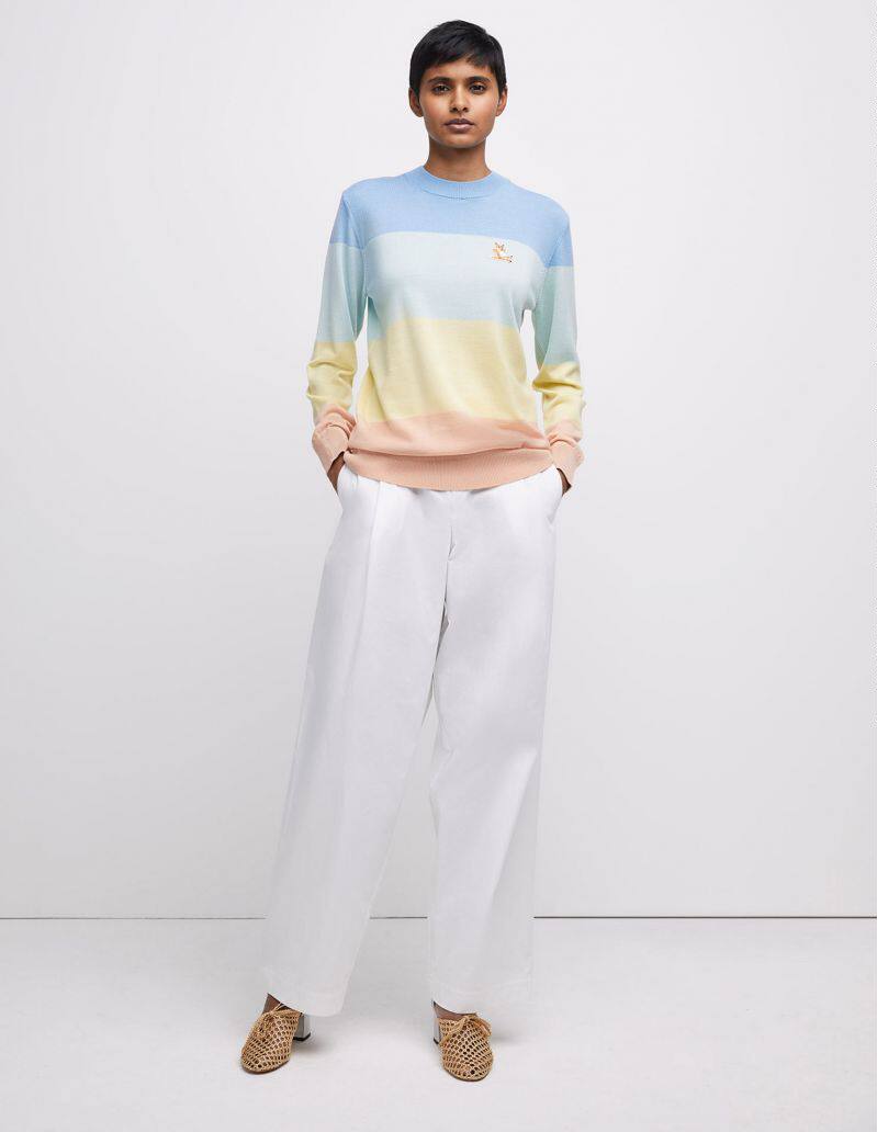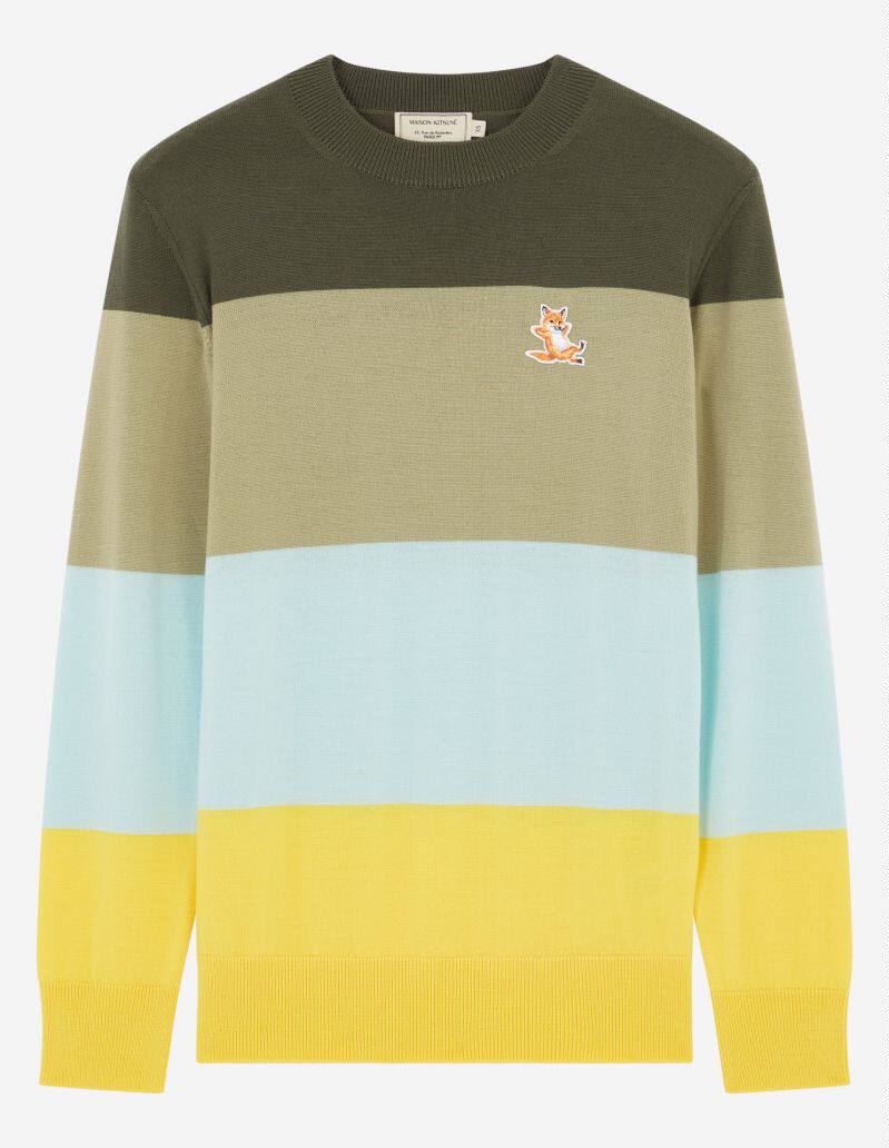 Spot Early Spring Maison Kitsune Colored Strips Fox Sweater Colorful Parquet and Collared Jersey Striped
