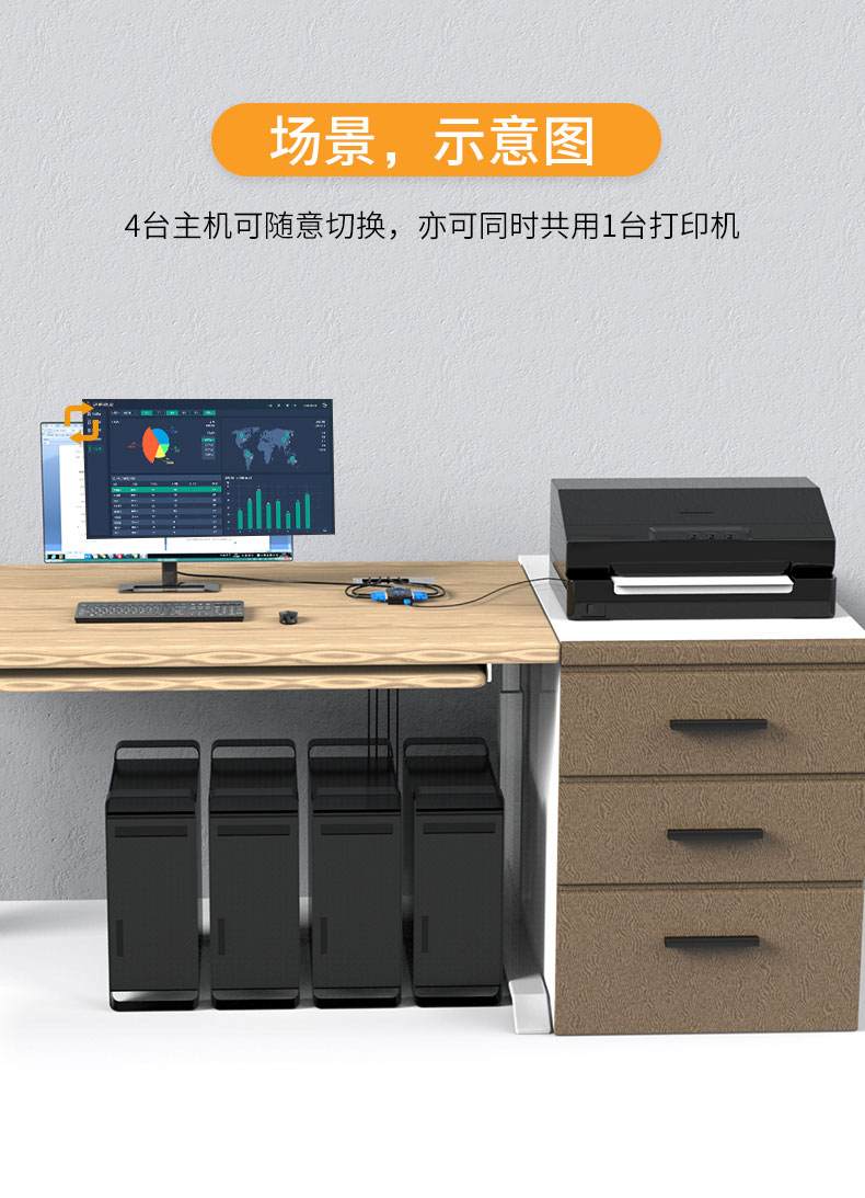 VGA KVM switch 4-port monitor Video computer screen converter One drag four 4-host keyboard and mouse sharing device Printer USB expansion VGA splitter Four-in-one-out