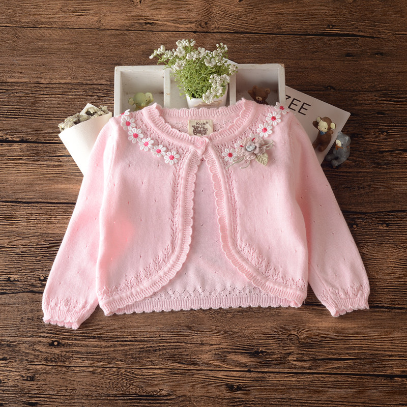 Girl Pure Cotton Air Conditioning Shirt Summer Small Shawl Spring Autumn Children Knit Cardiovert White Short Coat 0-1-7 Year Old Blouse 3