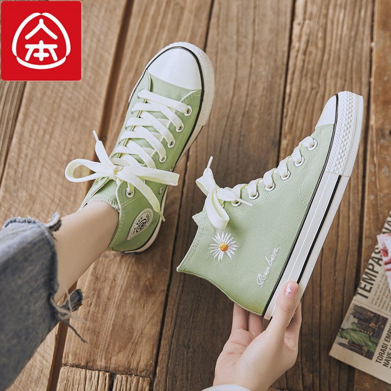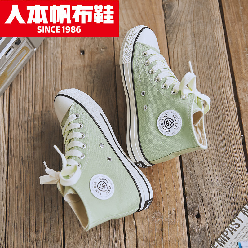 Renben matcha green women's shoes high-top canvas shoes 1970s board shoes autumn new big boy 12 girls 16 casual shoes