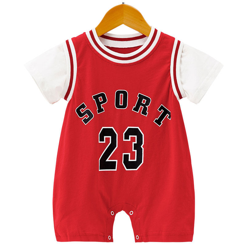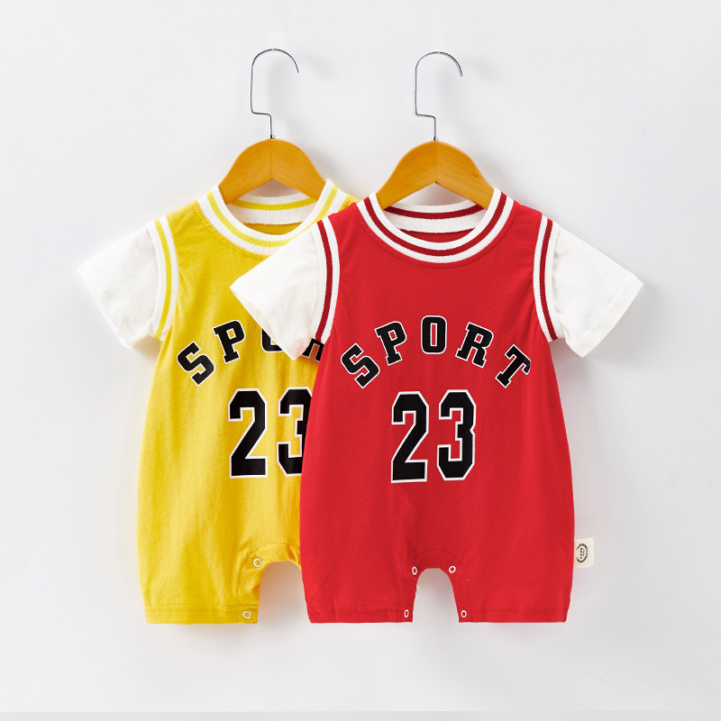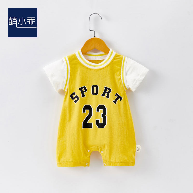 Baby summer jumpsuit male and female baby clothes fake two-piece set 0-12 month Korean version of the romper cute go out romper