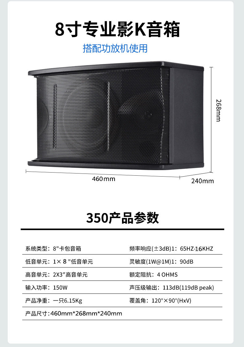 Passive Set Resistance 8 Inch Home Woody KTV CabbPlaza Shop Meeting Speaker High Power Heavy Bass Horn