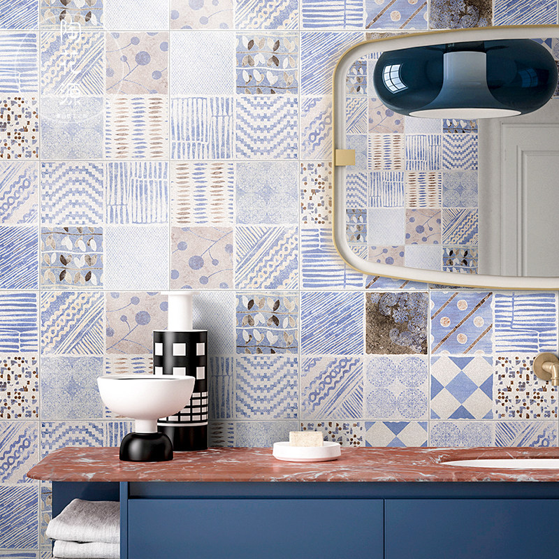 Mediterranean tiles blue plaid small flower tiles 300x300 balcony living room kitchen powder room wall tiles floor tiles
