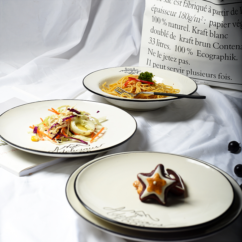 Defective Nordic ins simple letter bright face plate ceramic household plate straw hat bowl soup plate western restaurant steak plate