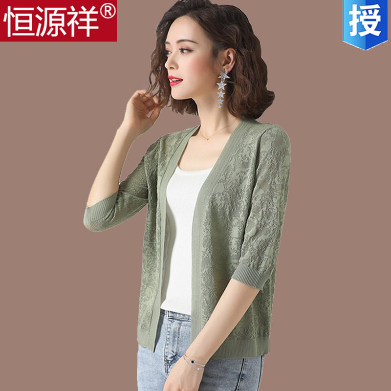 Hengyuan Xiang Mulberry Silk Hollowed-out Knit Cardio-hoodie Jacket Woman Thin Short And Large Size Air Conditioning Shirt Sunscreen Small Shawl Shoulder summer