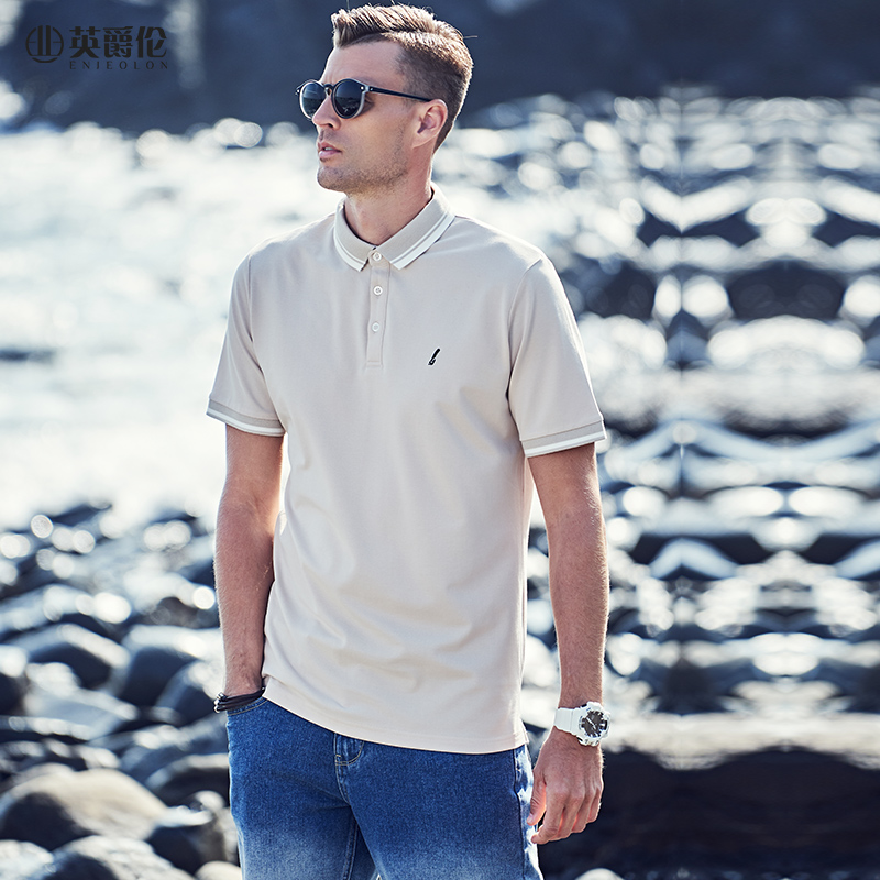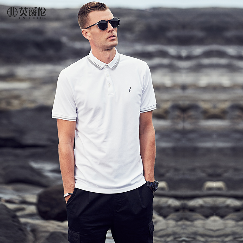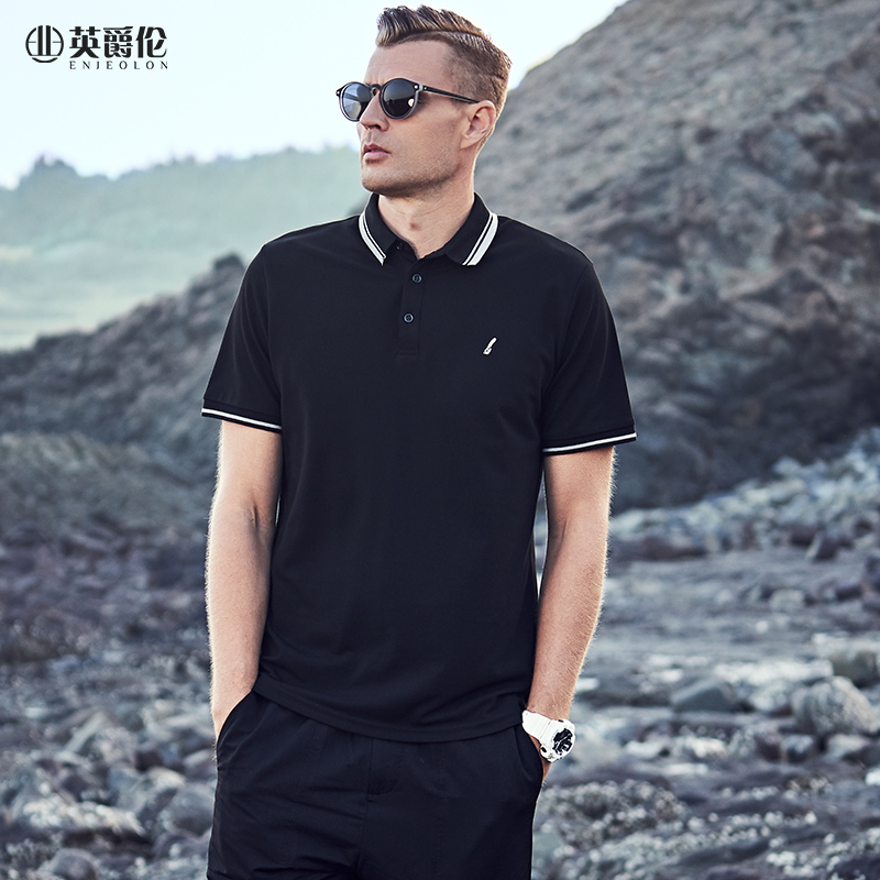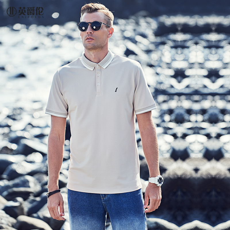 British Baroness Summer men short sleeve polo shirt striped embroidered T-shirt male dress Rafa Laurenma ball business blouse handsome