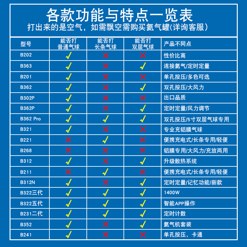 B301 Household single-hole air pump (1 knotter and 1 aluminum film balloon blower) B302P Household double-hole air pump (1 knotter and 1 aluminum film balloon blower) B