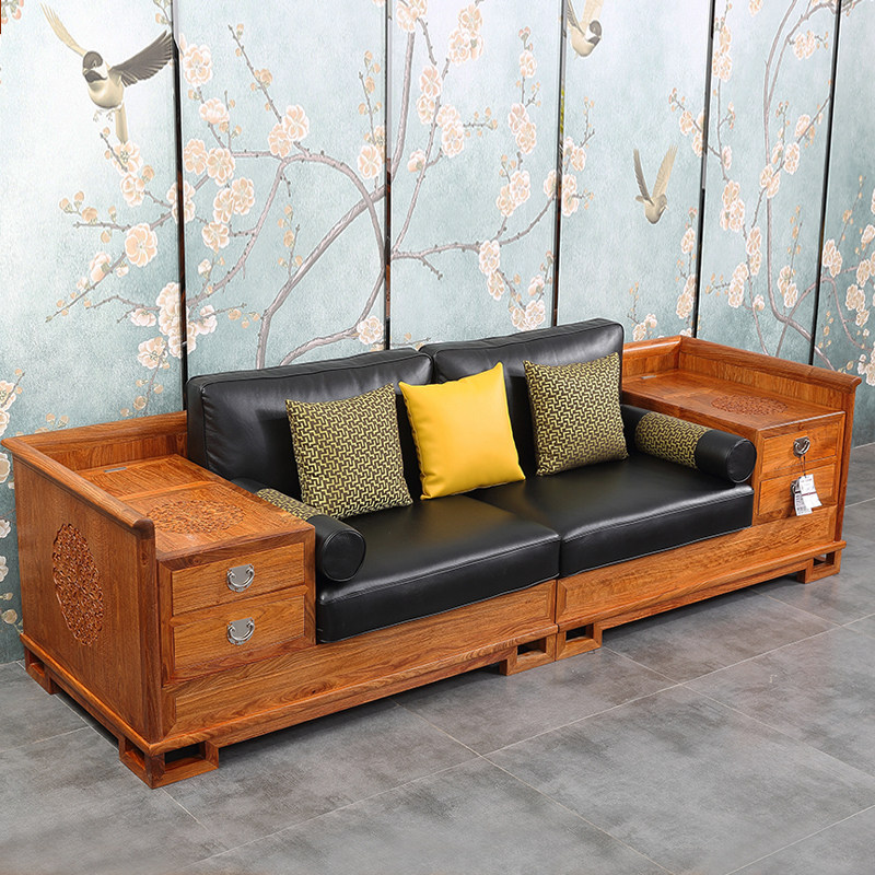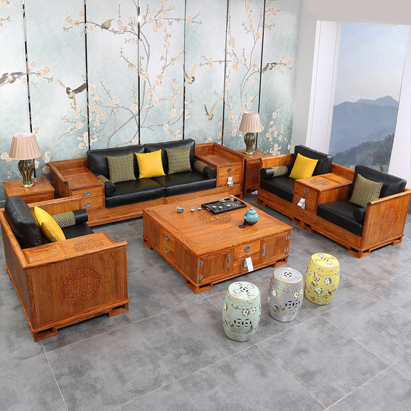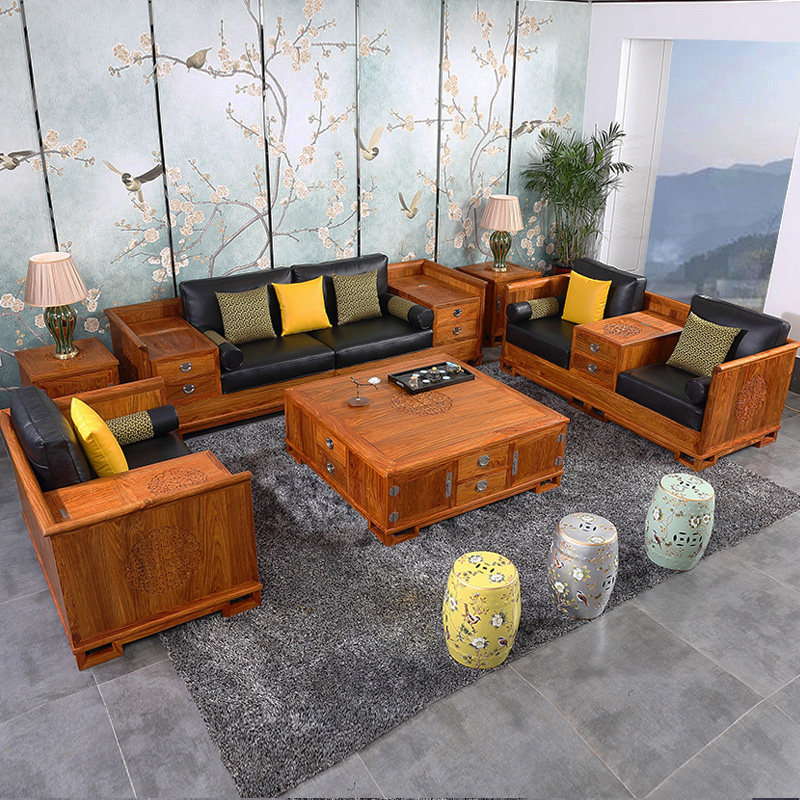 PLSF58A Sofa 123 Six-piece Set (Hedgehog Rosewood) Selected Cotton Linen Seat Cushion PLSF58B Sofa 123 Six-piece Set (Hedgehog Rosewood) Preferred Oil Wax Leather Seat Cushion PL