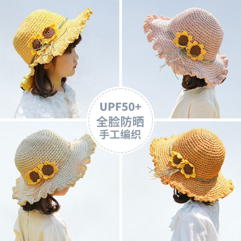 Children's sunscreen hat anti-UV foreign pie baby girl cool hat girls straw hat visor baby hat visor