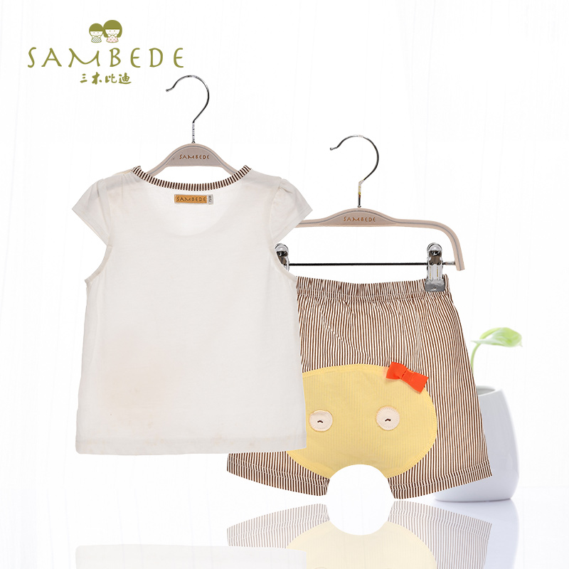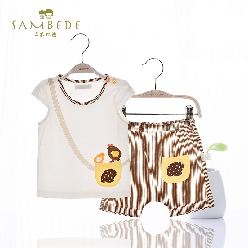 Three Wood Bidy Summer Boy Girl Pure Cotton Short Sleeve Suit Blouse Shorts Comfort Baby two sets