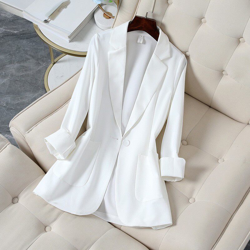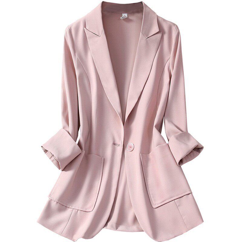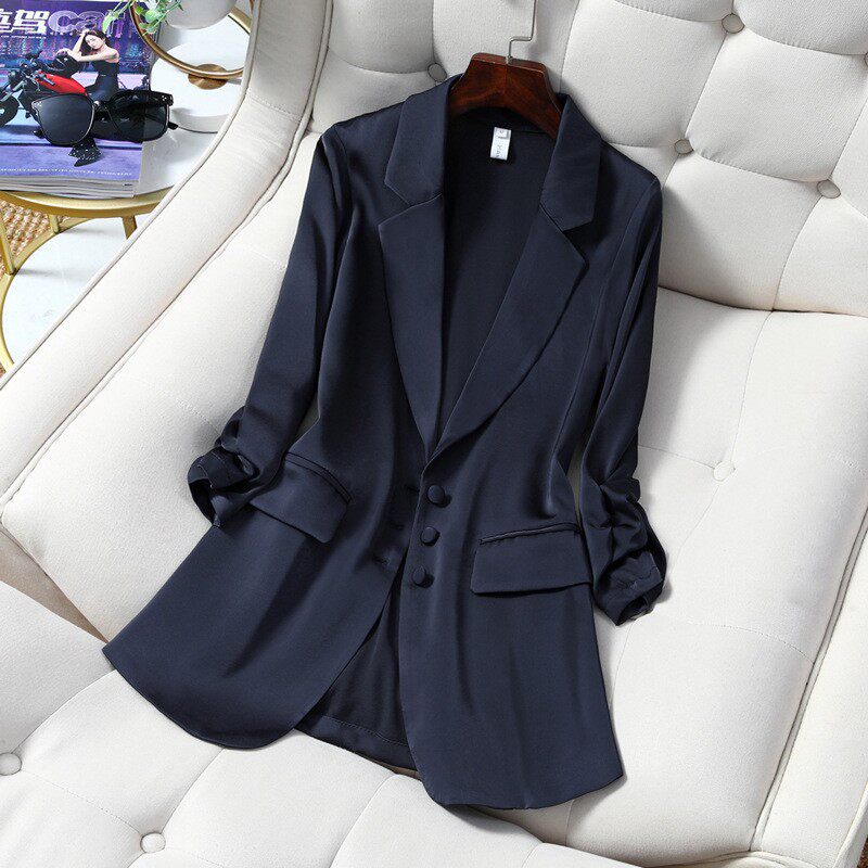 2022 new spring and summer large size navy blue suit jacket female fat mm high-quality thin professional small suit 200 catties