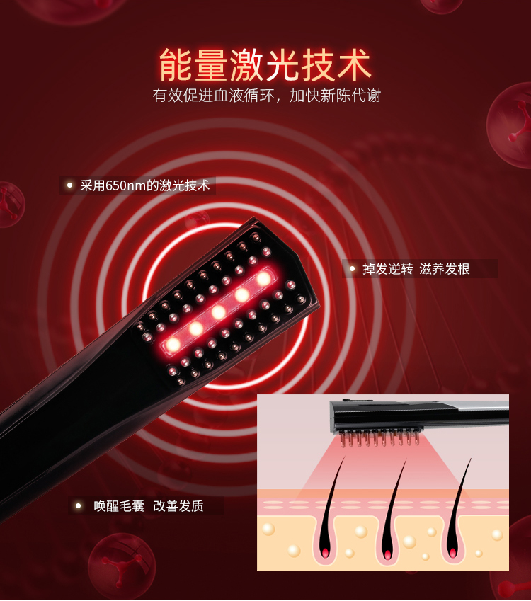 LLLT low-energy red light comb smear artifact head treatment medicine comb laser hair hair anti-hair loss and increase hair head massager